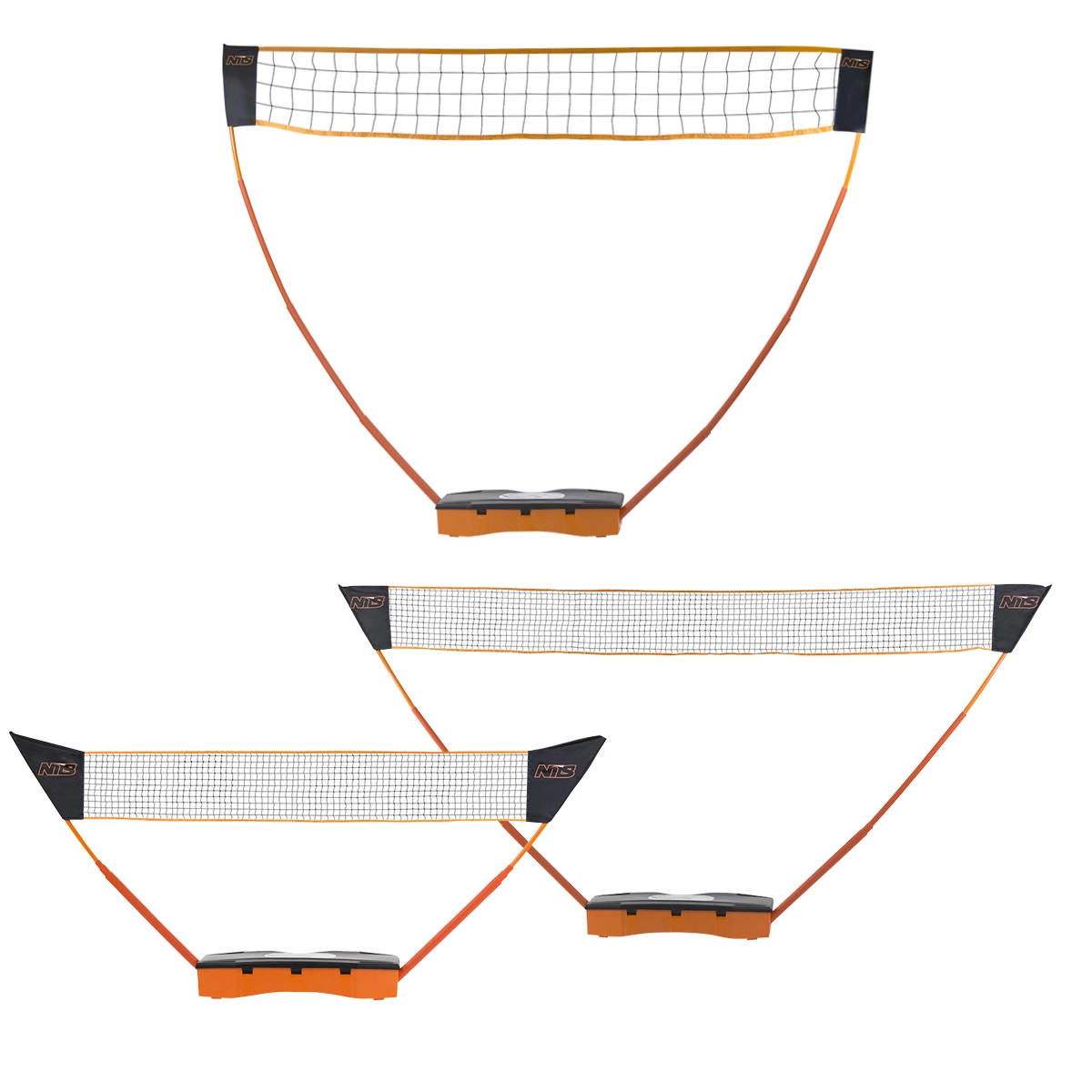 Easily switch between heights of 224 cm (volleyball), 155 cm (badminton) and 100 cm (tennis) using a quick, tool-free snap system.