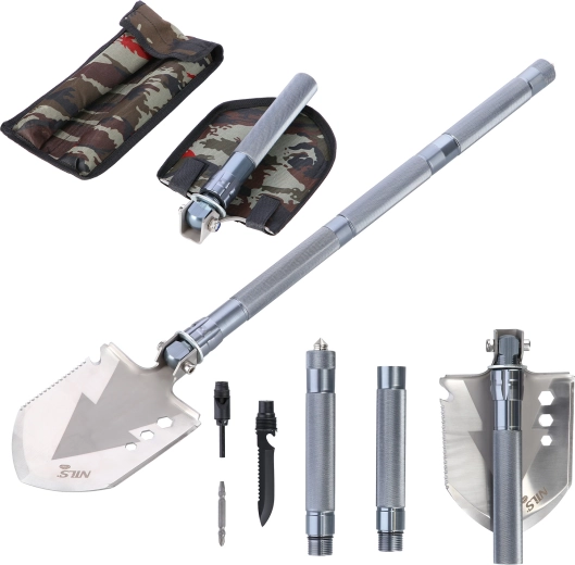 Thanks to a rich set of integrated tools, you can handle digging, cutting, prying, starting a fire, or emergency situations. The shovel features a comfortable, segmented handle for a secure grip and can be easily folded into a compact pouch that fits in a backpack.