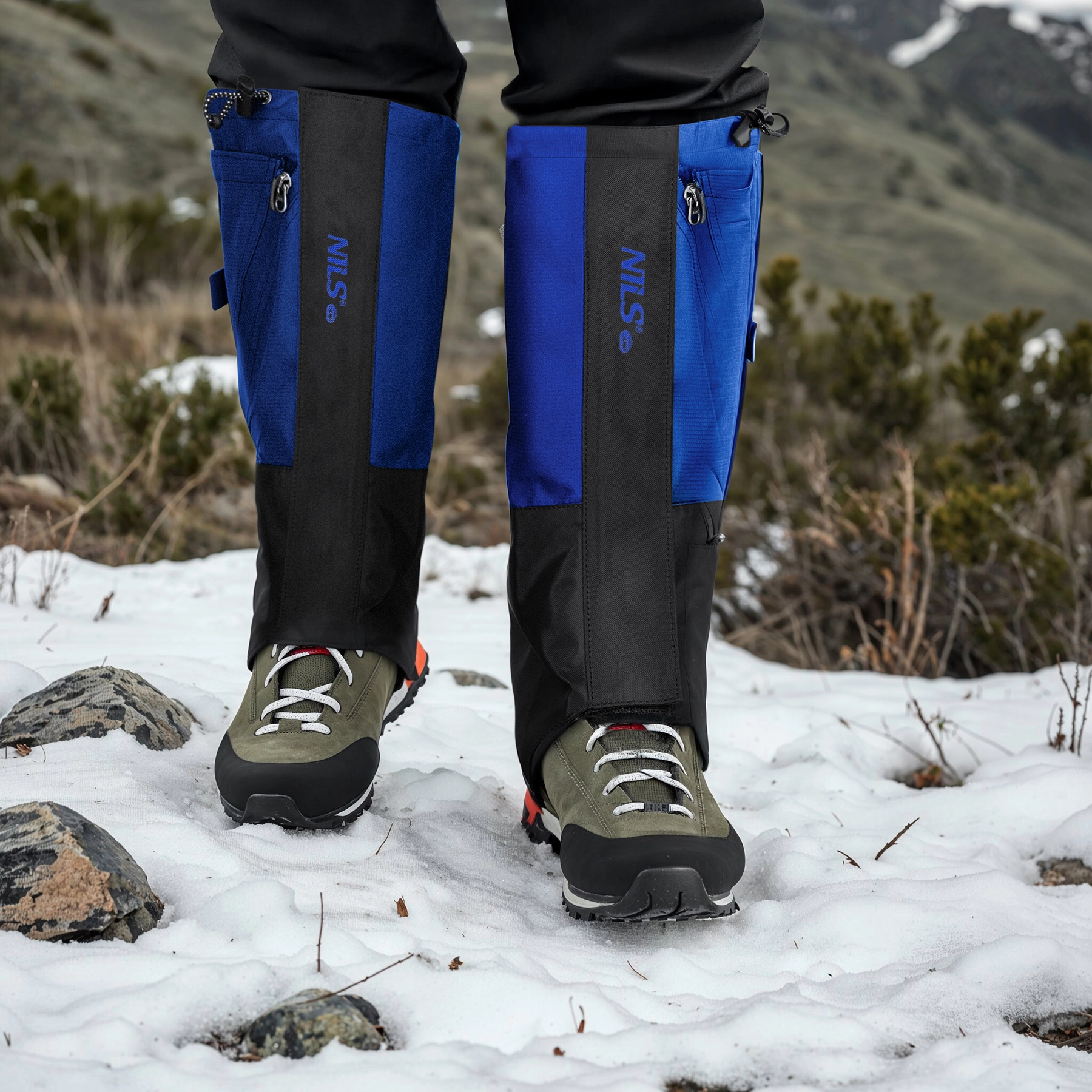 NILS Camp NC17112 are practical gaiters for trekking, hiking, and field work. The durable nylon protects against moisture, snow, and mud while remaining light and flexible for unrestricted movement. The upper elastic cuff with a drawcord prevents slipping and maintains a secure fit around the calf.