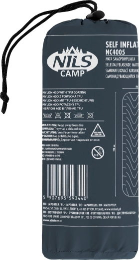 A lightweight and durable inflatable sleeping pad from NILS Camp ensures a comfortable sleep outdoors on grass, sand, or pine needles. Thanks to the large valve, you can inflate it quickly; the 40D nylon with TPU coating offers excellent abrasion and moisture resistance, and once packed, the pad is compact and easy to carry.