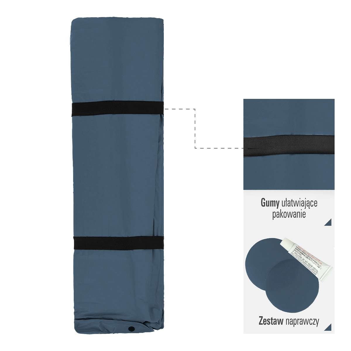 Thanks to easy packing with securing straps and buckles, the pad stays tightly compressed and takes up minimal space in the carry bag. A practical repair kit included in the package helps you quickly fix minor damage on the go.