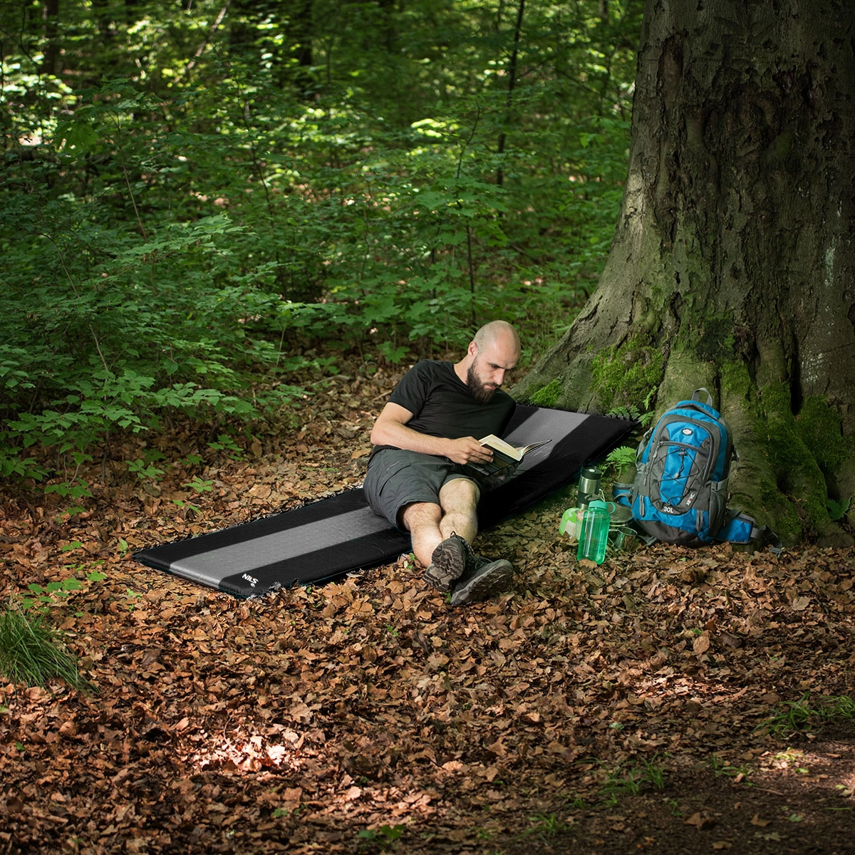 The internal open-cell PU foam draws in air by itself after opening the valve. Just add a small top-up of air to reach ideal firmness and you’re ready to sleep.