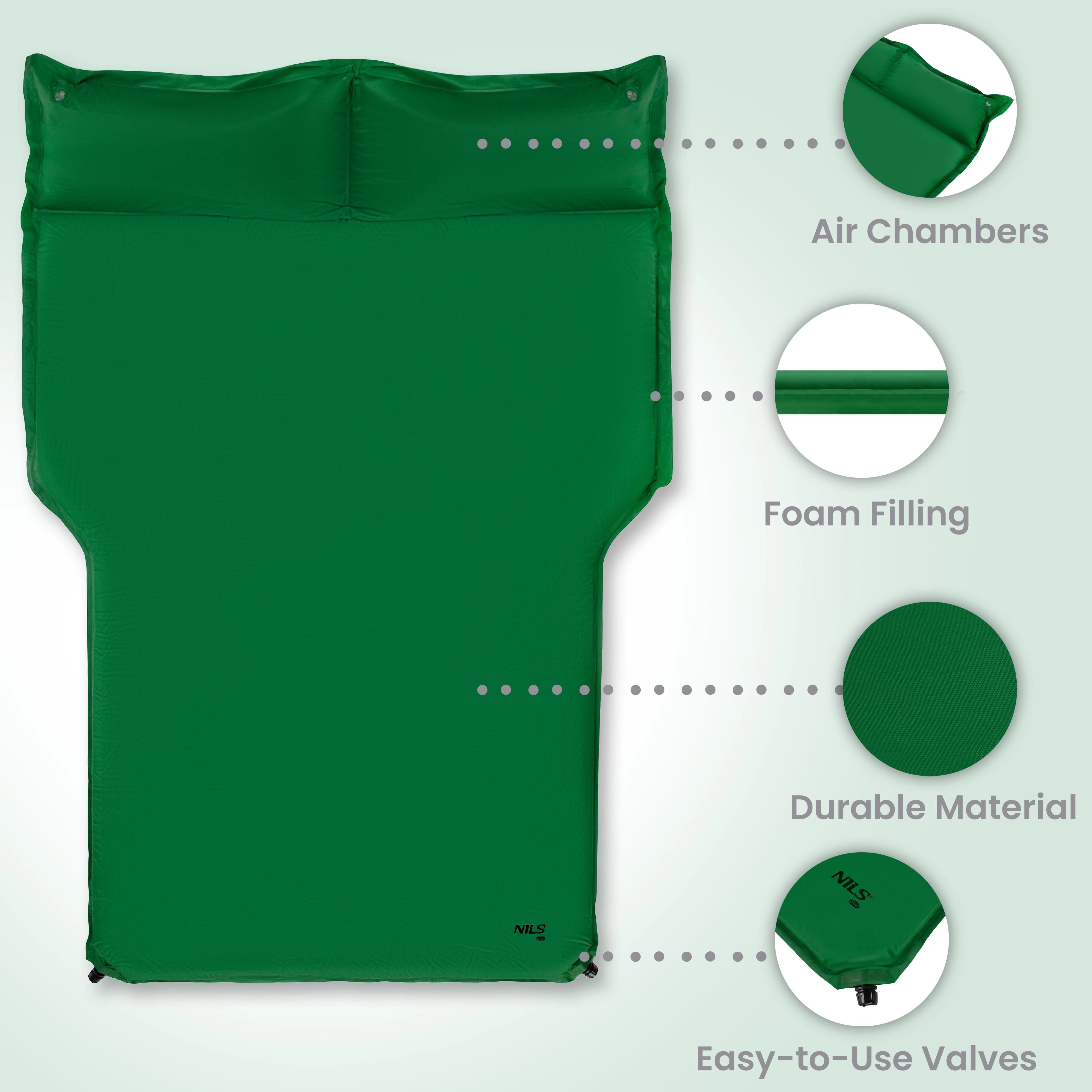The practical NILS Camp self-inflating car sleeping pad turns your trunk into a comfortable sleeping space in just a few minutes. Thanks to its 5 cm thickness, integrated pillows, and durable materials, it offers comfort, quick setup, and reliable insulation for car camping, trips, and emergency overnights.