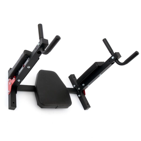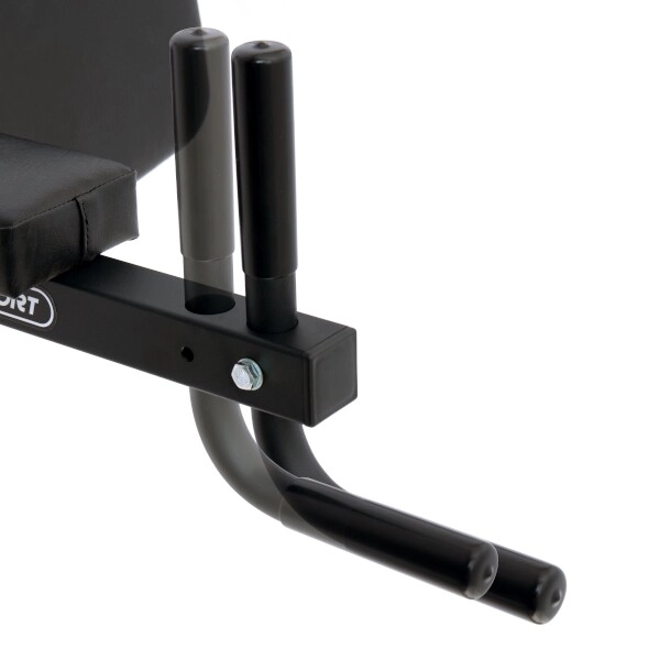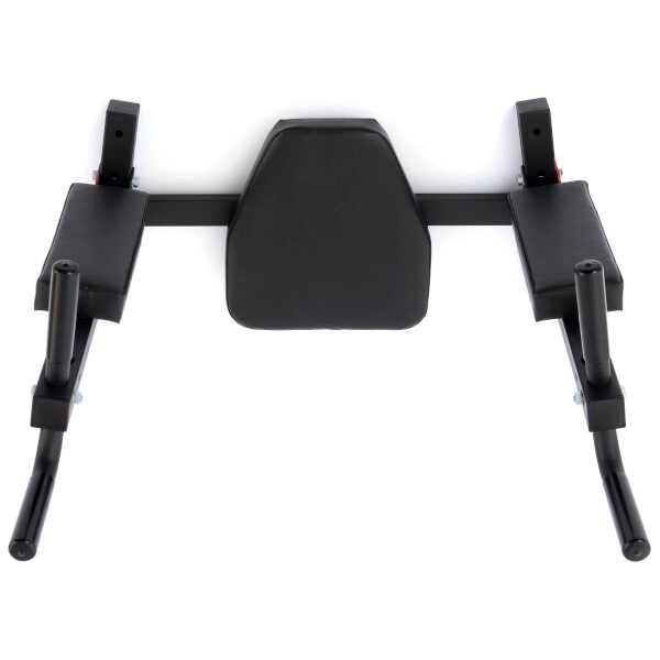 Robust wall-mounted dip bars MARBO MH-D101 2.0 are ideal for training the chest, triceps, and abs. They offer adjustable handles for the perfect grip width, padded elbow rests, and a firm backrest for maximum comfort. Thanks to the 40 × 40 mm steel construction, they handle a load capacity up to 200 kg and ensure stability with every rep.