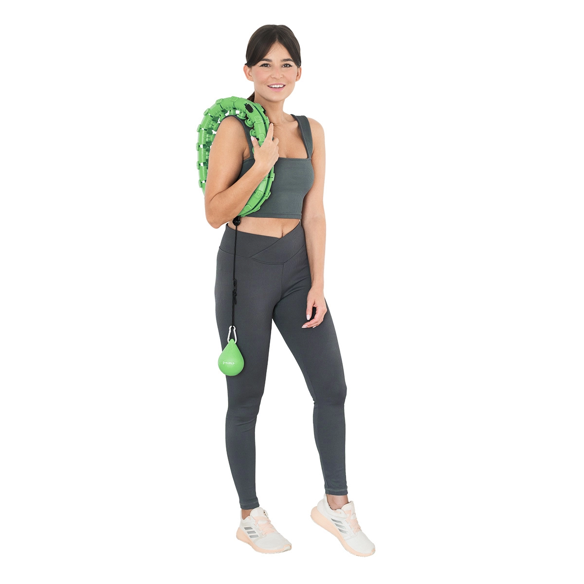24 interconnectable segments let you set the size precisely to your waist (46–105 cm). The hoop stays stable and doesn’t drop over the hips, so you can focus purely on movement.