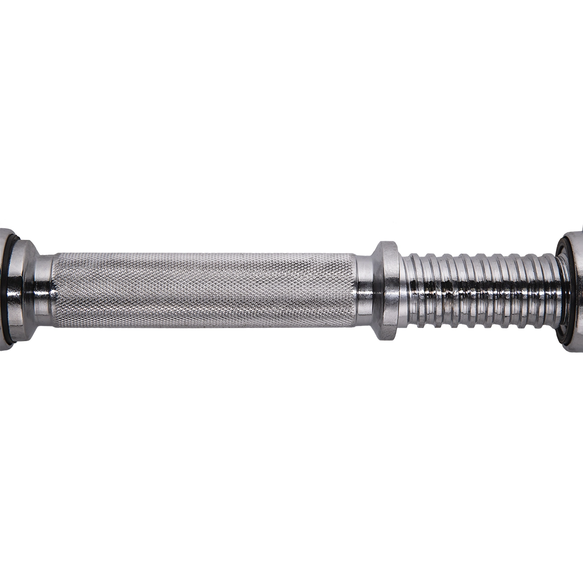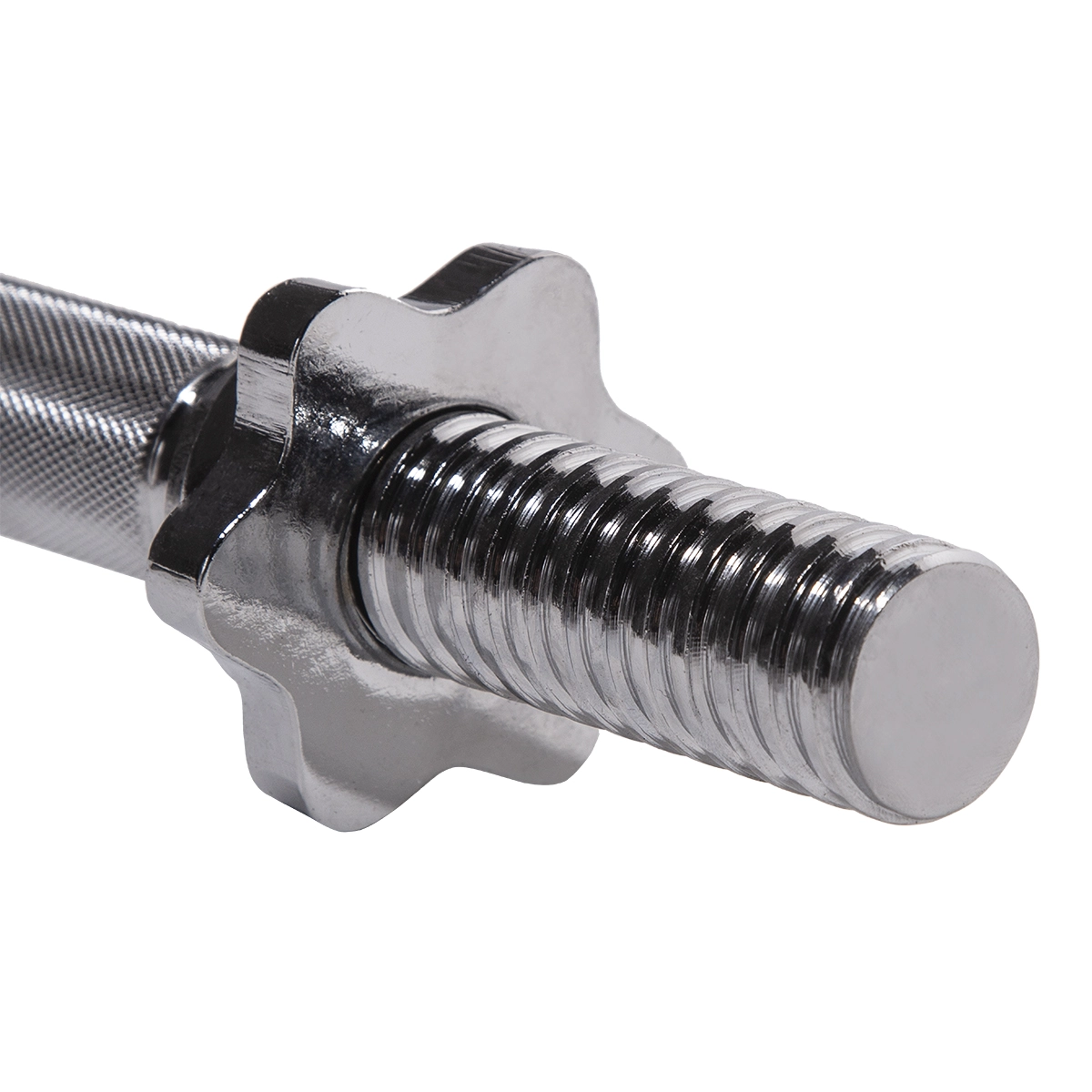 Hardened steel provides high load capacity and durability, while the chrome finish protects against corrosion and wear during everyday training.