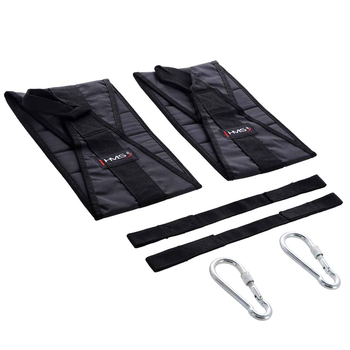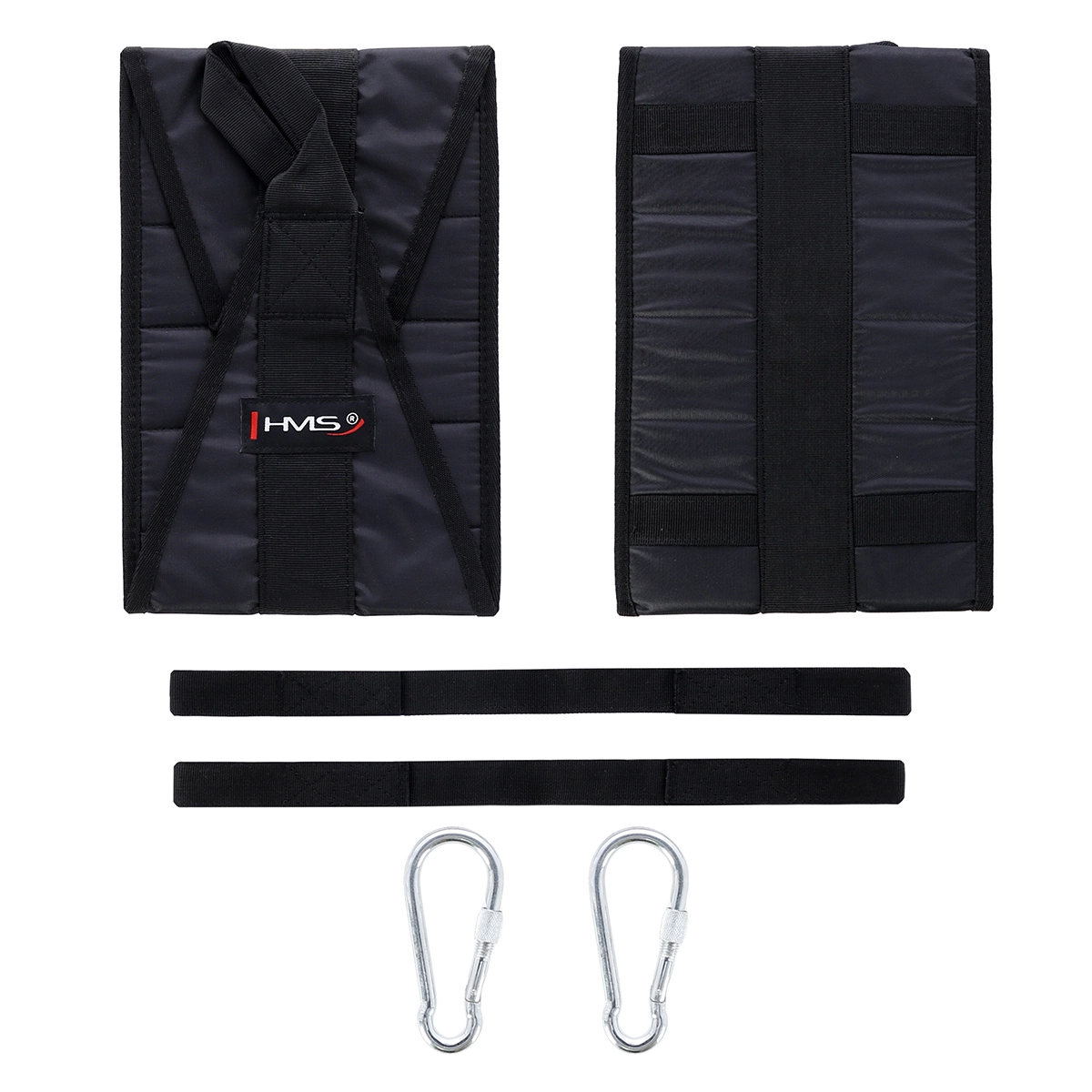 The HMS F4439 hanging ab straps are an ideal tool for strengthening the abdominal muscles, core, and hip flexors. Simply attach them to a pull-up bar using the metal carabiners, thread your arms through, and train with minimal stress on shoulders and wrists. High-quality construction with thick padding provides great comfort even during demanding sets.