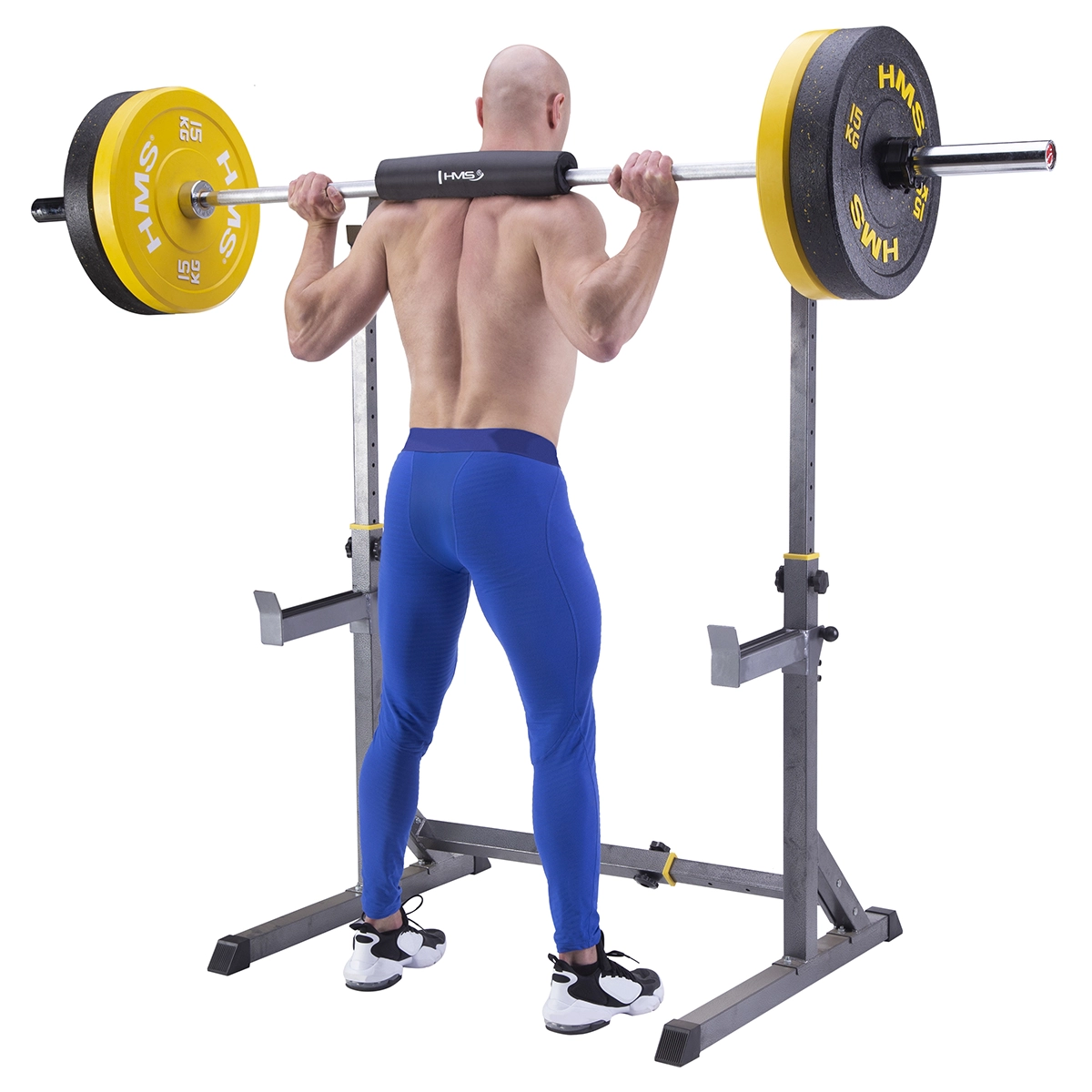 Dense 3 cm foam effectively distributes barbell pressure and protects the traps and neck during squats and presses.
