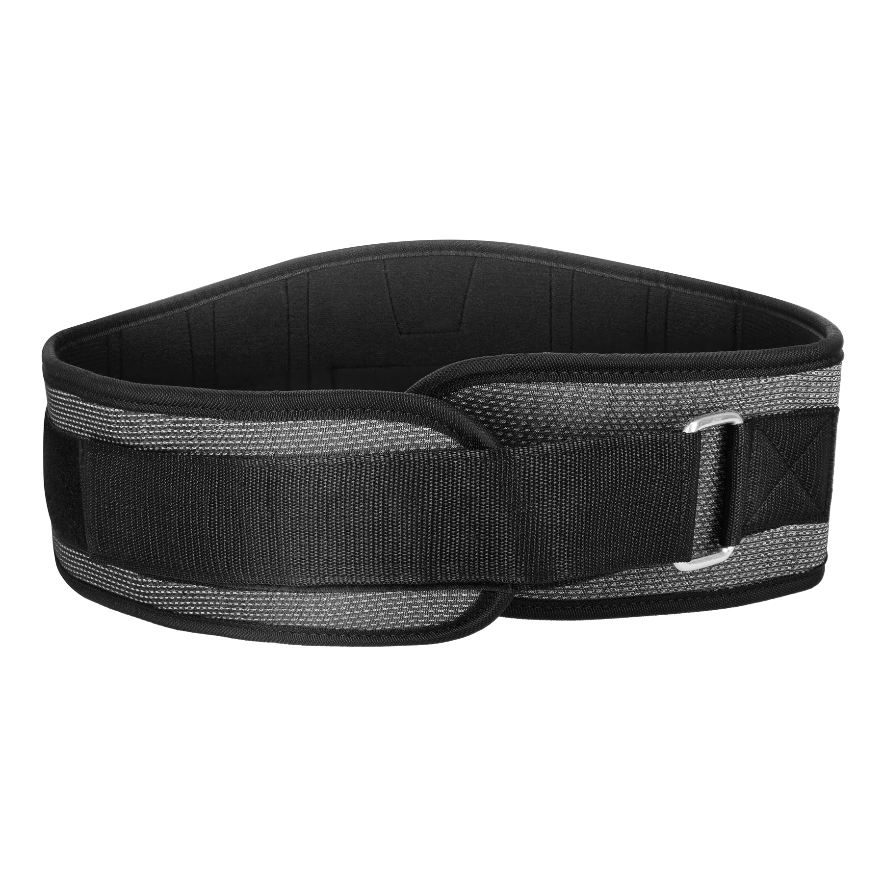 The universal HMS neoprene weightlifting belt in stylish grey provides reliable lumbar and lower back support during demanding exercises such as squats and deadlifts. Thanks to its 6 mm thickness and 180 mm-wide lumbar section, it offers stability, comfort, and secure core bracing during strength training.