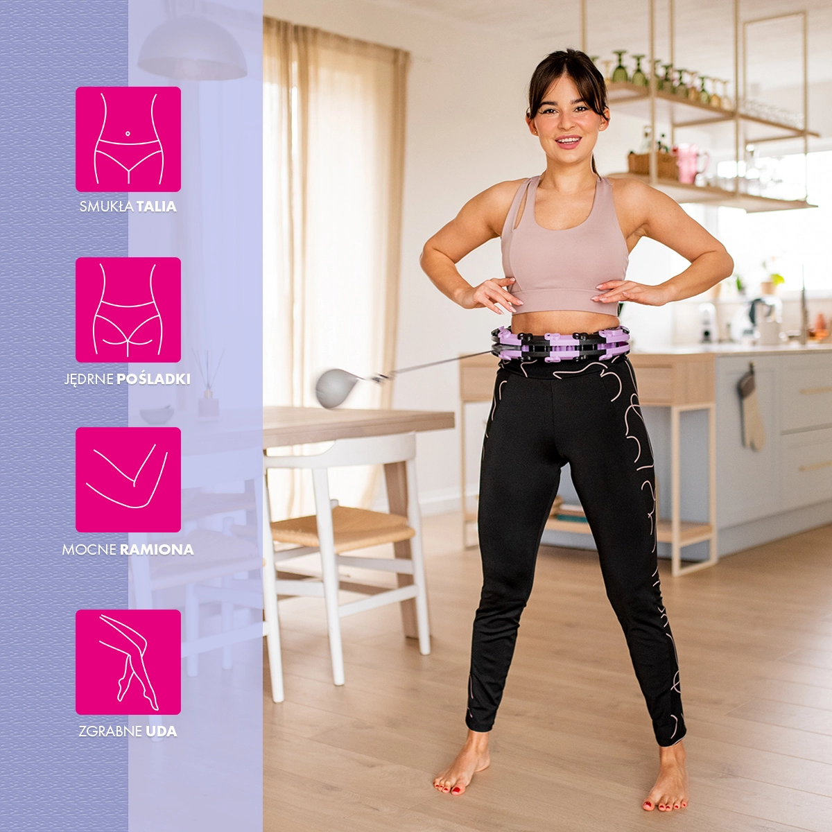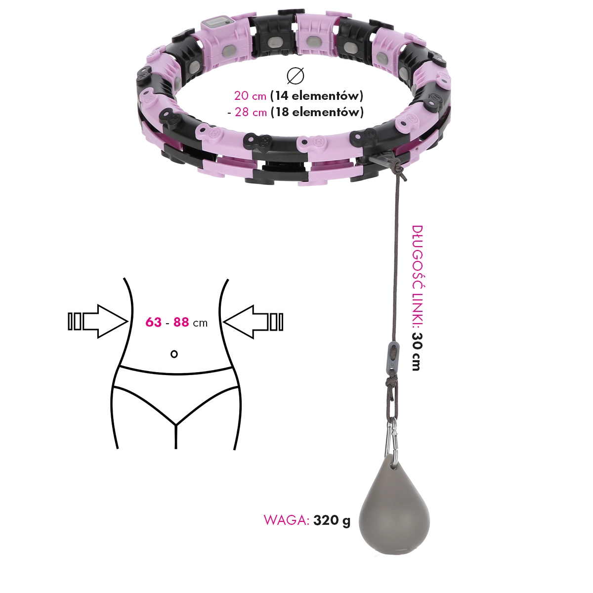 Enjoy an effective home workout with this smart massage hula hoop. The hoop features an adjustable length, a rotating weight for a more intense session, and an integrated counter for laps. Interior massage nodes enhance comfort and help stimulate the waist area. Ideal for calorie burning, core strengthening, and shaping the waist.