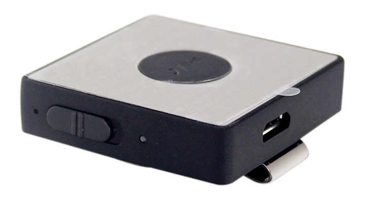A detachable clip‑on module with buttons for volume, playback, and call handling clips to your clothing so you have everything under control.