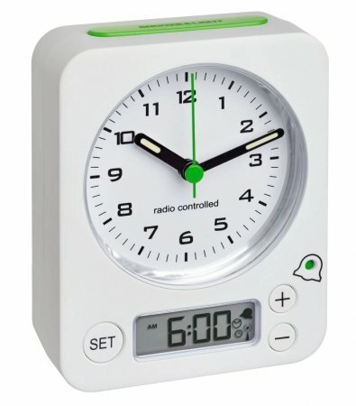 The TFA Combo alarm clock is an ideal choice for everyday use at home or on the go. The analog dial with silent movement is complemented by a clear digital display showing the set alarm time. Automatic synchronization via the DCF radio signal ensures accurate time without manual adjustment, including automatic time changes.