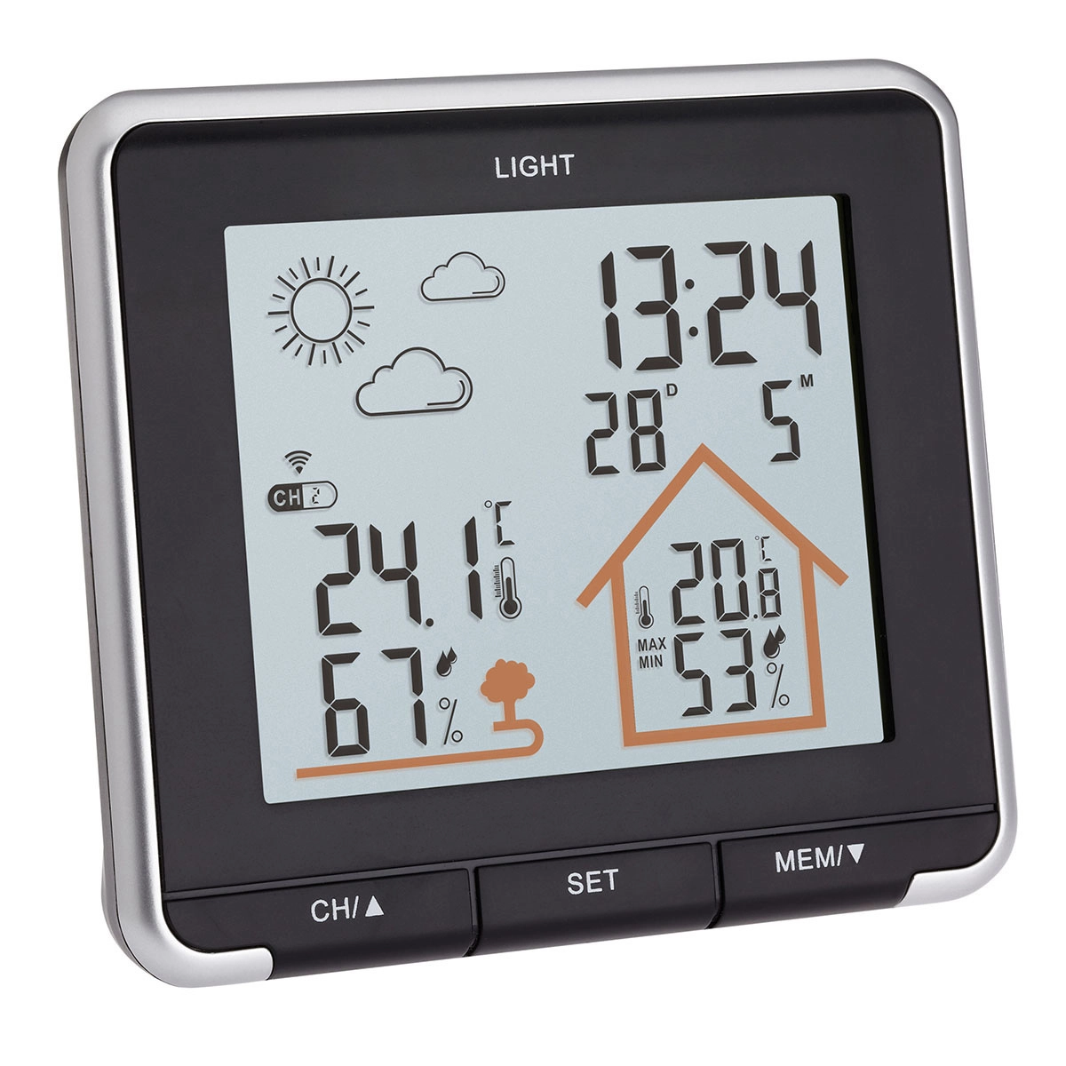 The TFA LIFE weather station in an elegant black finish provides a practical overview of the climate indoors and outdoors. The large, easy-to-read LCD shows temperature, humidity, simple weather icons, accurate time and date. Thanks to wireless transmission from the outdoor sensor, you get up-to-date data without unnecessary cables.