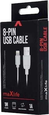 Maxlife charging cable 8‑pin for iPhone, iPad and iPod 1 A 1 m white