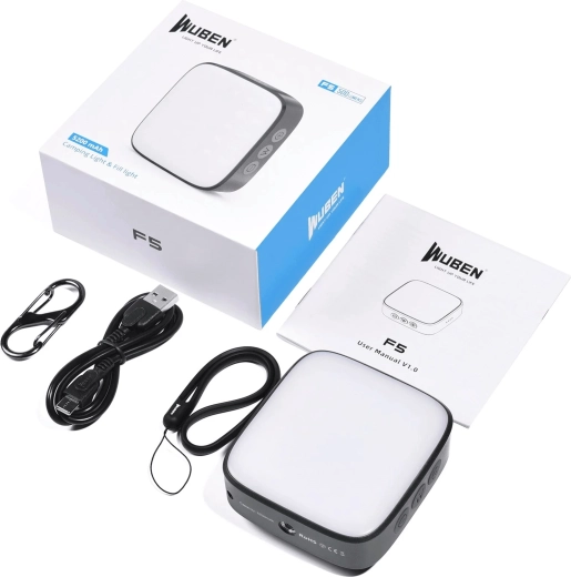 WUBEN F5 light, lanyard, carabiner, USB‑C charging cable