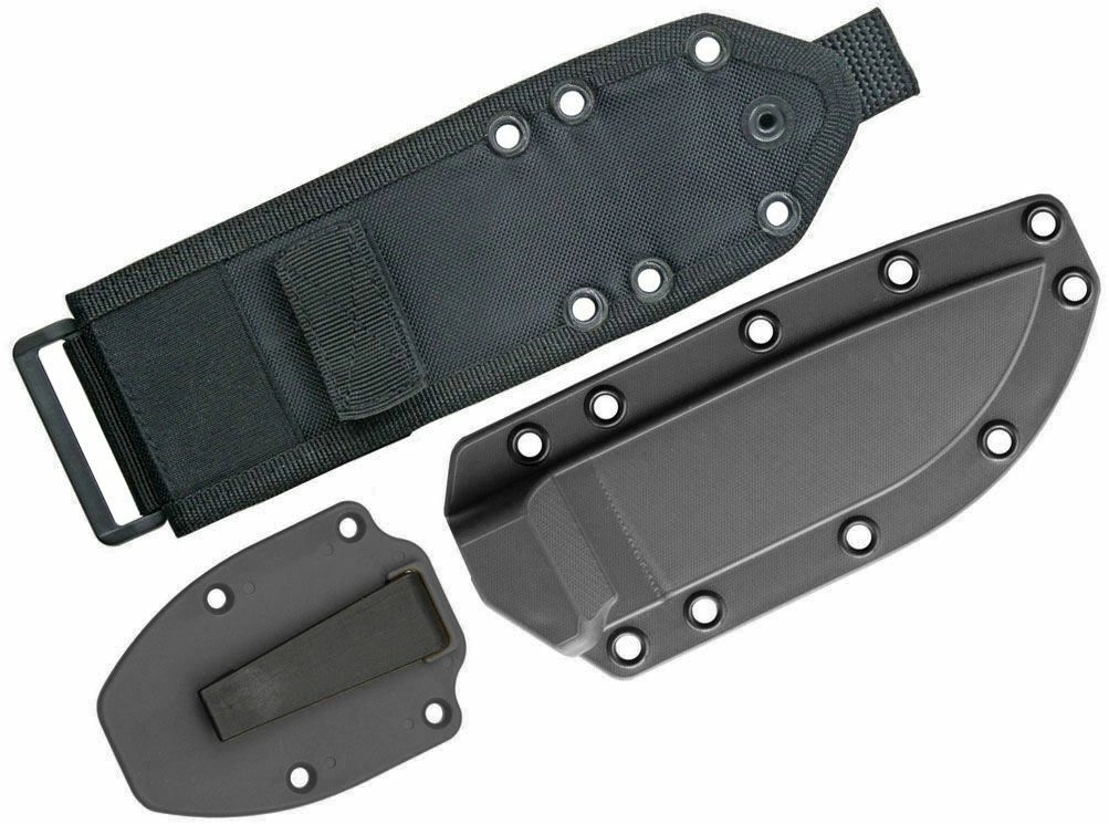 The ergonomically shaped Micarta handle in dark brown ensures a confident grip even in challenging conditions. The knife comes with a durable black polymer sheath that can be attached to gear thanks to MOLLE compatibility—ideal for military, law enforcement, and outdoor enthusiasts.