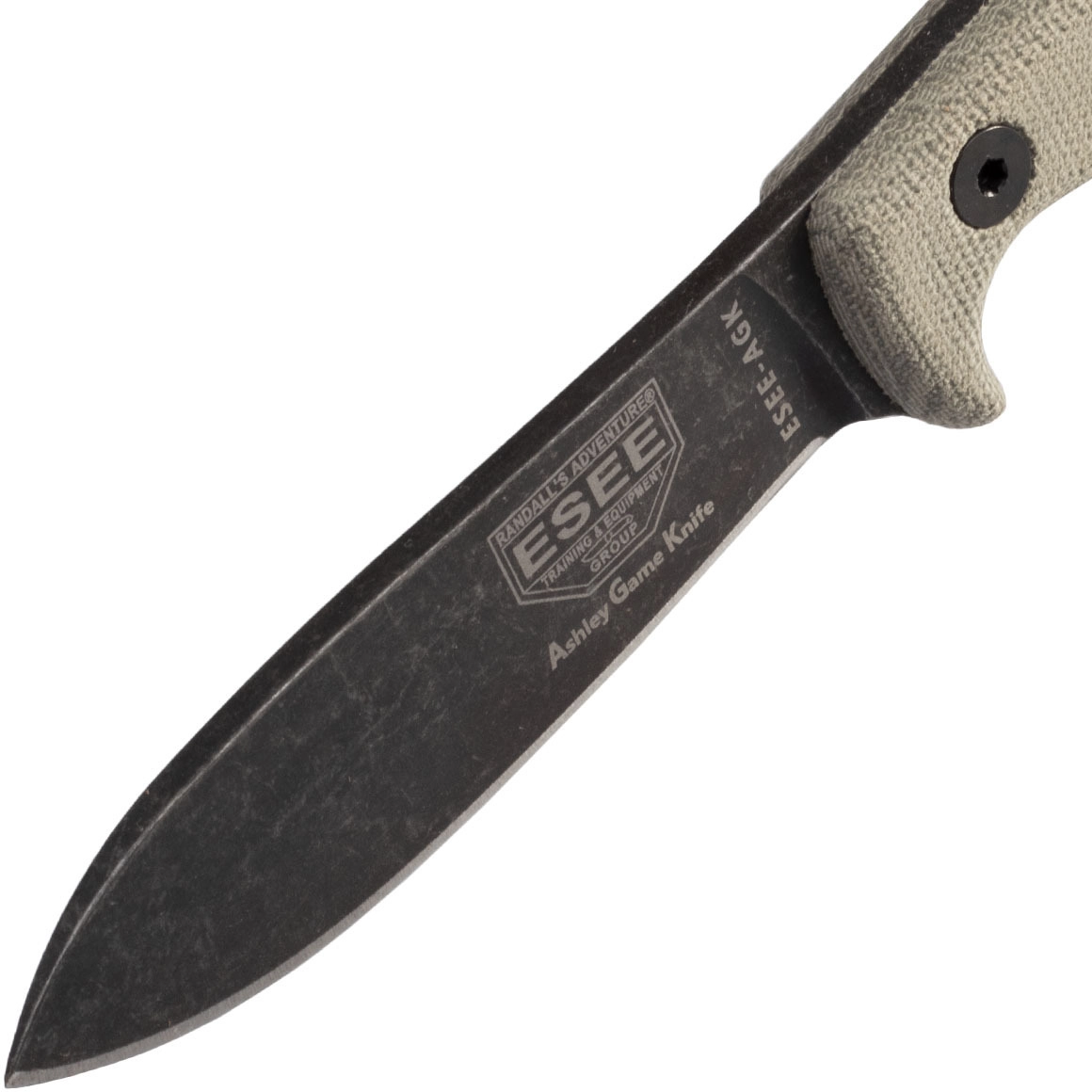 The ESEE AGK (Ashley Game Knife) is a compact hunting knife designed for precise field work—from field dressing to fine cutting. The durable high-carbon steel 1095 with a Black Oxide Stonewash surface offers excellent cutting performance, easy sharpening, and robustness for everyday use.