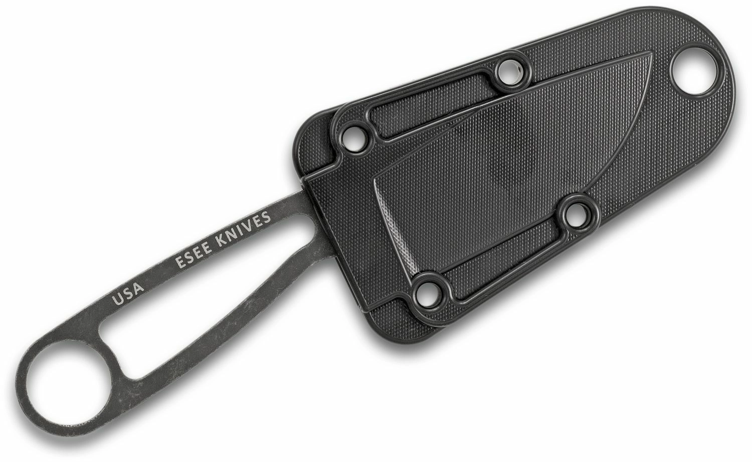 ESEE IZULA Neck Knife Black, 1095 Carbon Steel, Stonewash, Black Sheath