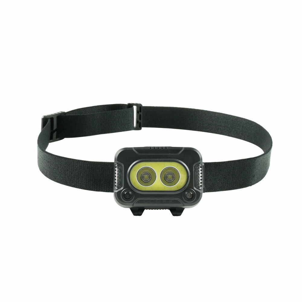 The versatile TECHNIK MT‑H25 headlamp for hiking, camping, and work offers a dual light source (CREE XPG‑2 + COB LED), up to 350 lm, and a beam distance of 80 m. A durable polycarbonate body with a rubberized surface meets IP65 and withstands drops from 3 m. Features USB‑C charging, a motion sensor, red light (steady/flashing), and 4 brightness levels for maximum flexibility.