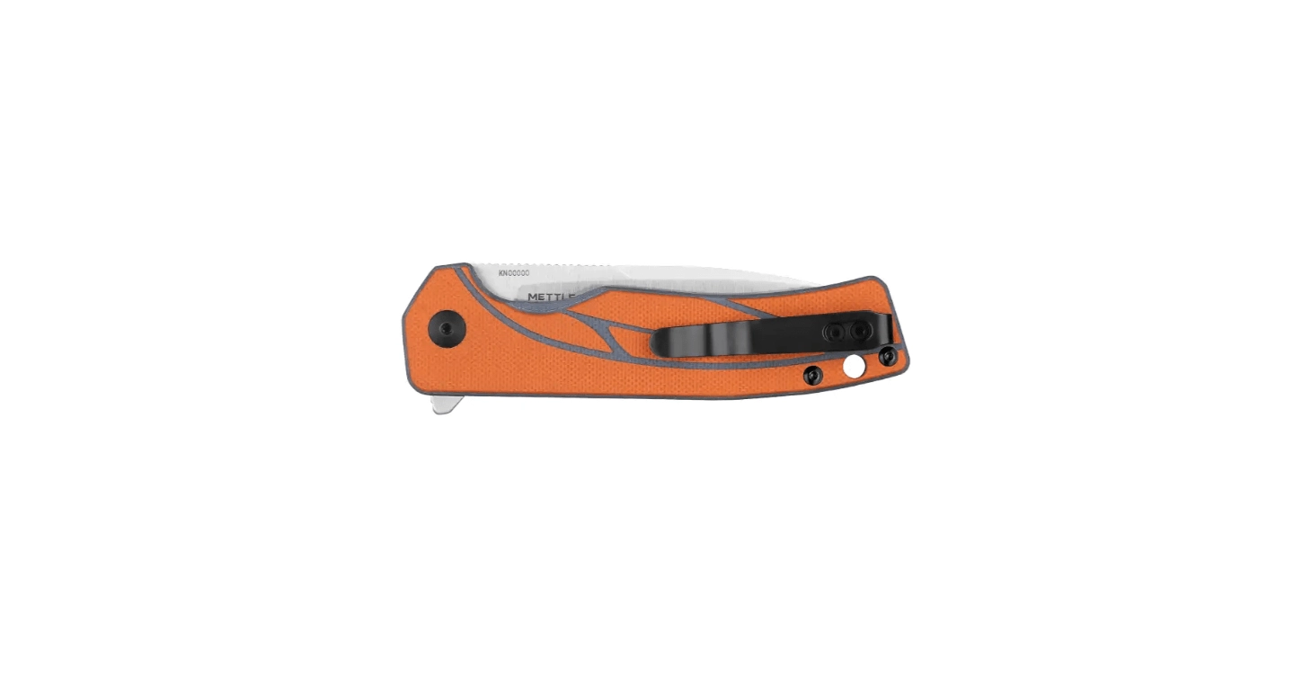 A compact and reliable EDC knife for everyday use. Oknife Mettle offers a durable 154CM steel blade with a satin finish, convenient flipper or button opening, and secure Button Lock. The ergonomic G10 handle in gray‑orange with a leaf‑inspired texture fits the hand perfectly.