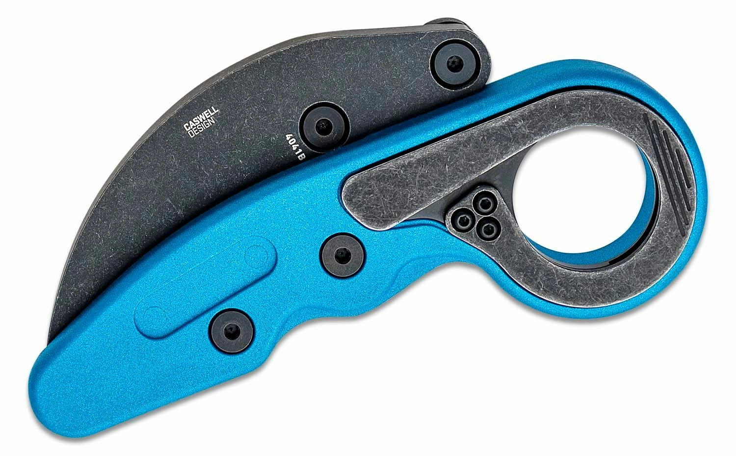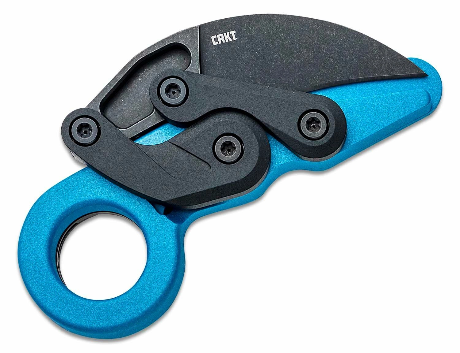 A revolutionary pocket knife in a karambit form that impresses with a blend of innovation and reliability. Thanks to the kinematic opening, a thumb push on the top crossbar deploys the blade smoothly and locks it securely. Close it just as easily by sliding the discreet lever at the bottom of the ring.