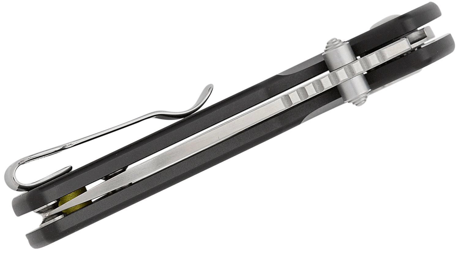 A sturdy steel pocket clip holds the knife firmly on the pocket edge. Discreet and reliable storage for everyday carry.