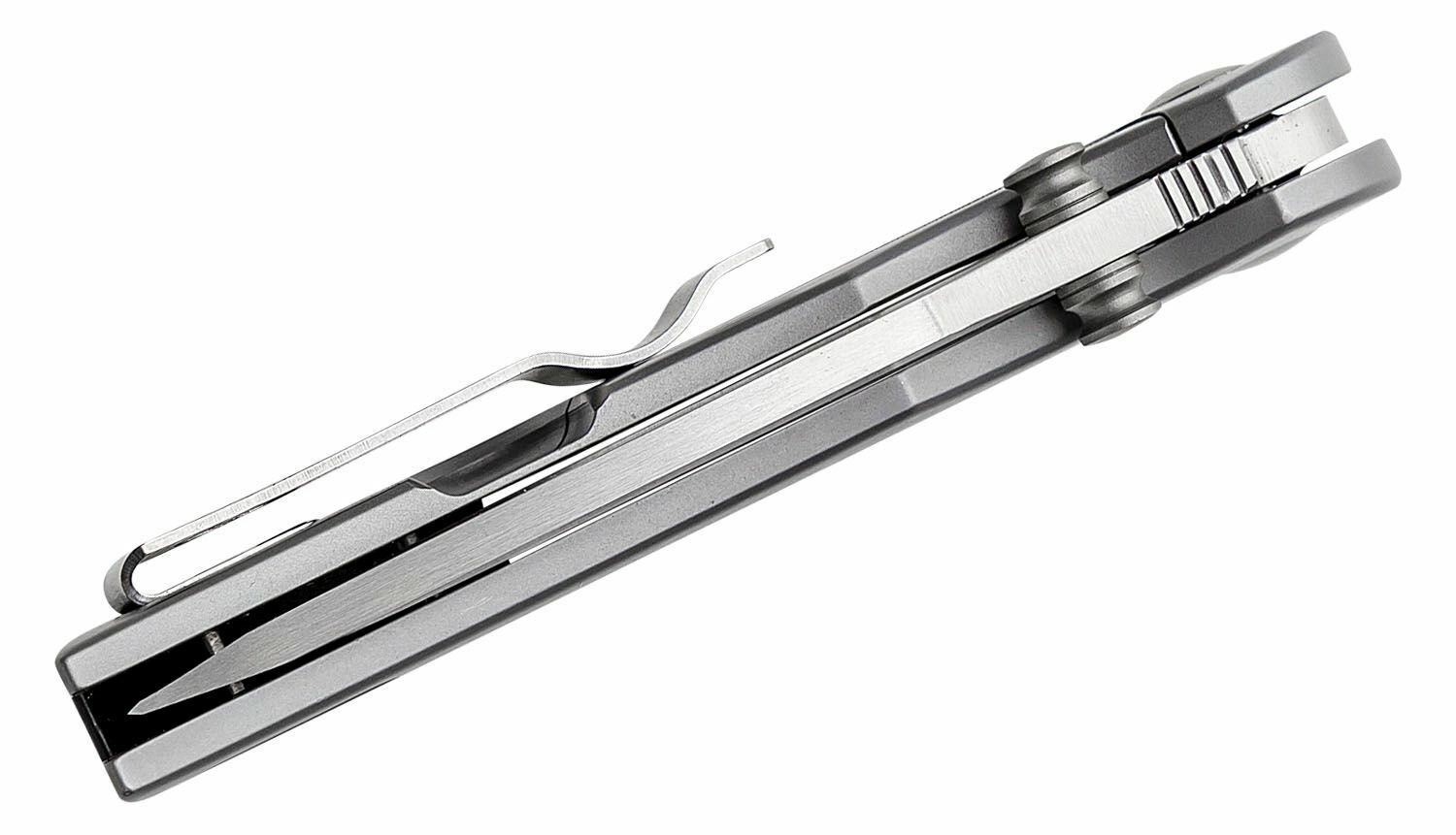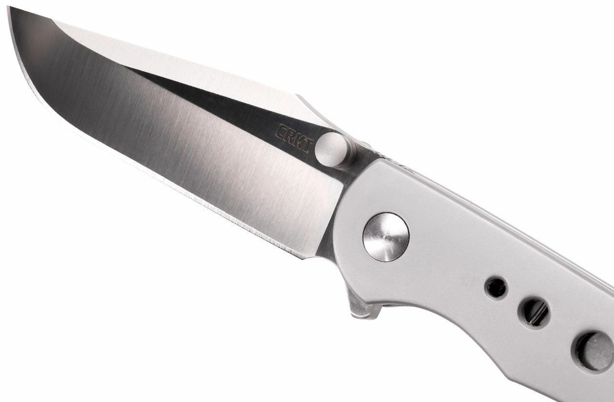The compact EDC knife CRKT Oxcart Silver by Robert Carter combines a durable all-stainless construction, a smooth AUS-8 blade with a satin finish, and fast one-handed opening via flipper or thumb stud. A Frame Lock and pocket clip ensure safe and comfortable everyday carry.