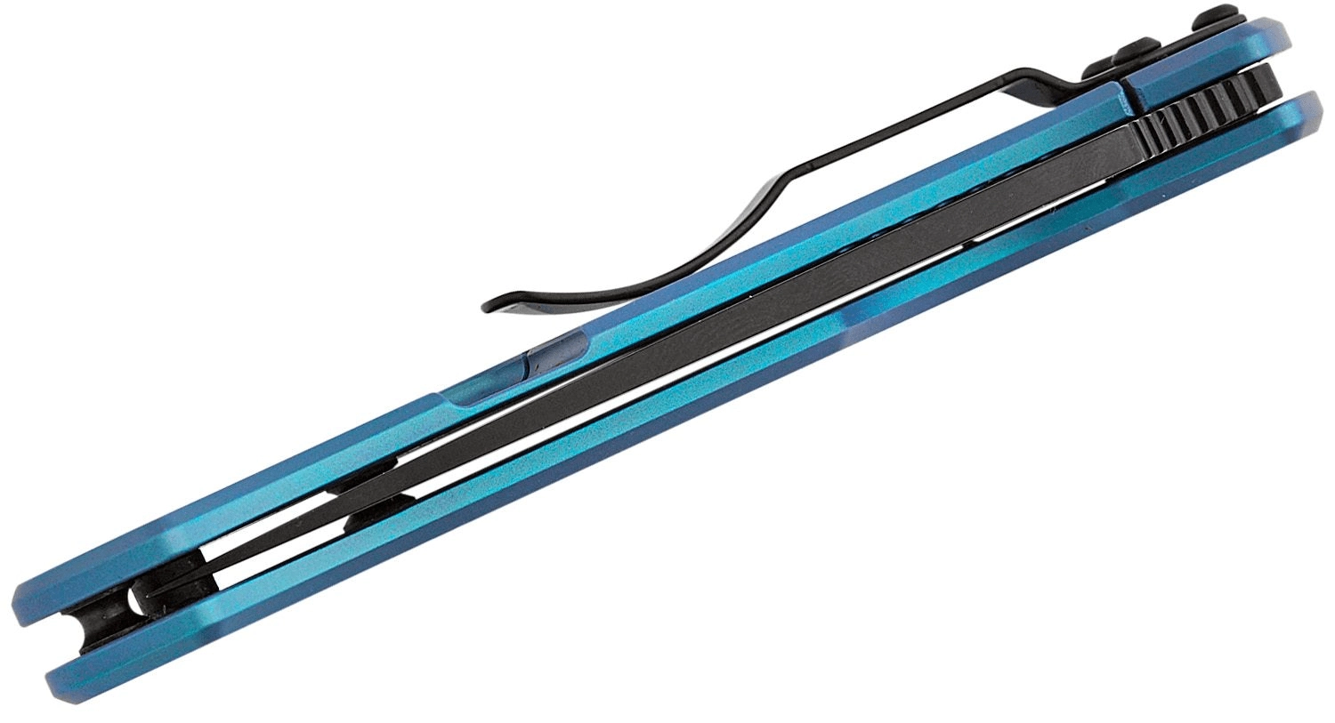 The blue titanium handle is strong, lightweight, and highly wear-resistant. The RIL (Reeve Integral Lock) keeps the blade secure during use, while the four-position pocket clip supports tip-up/tip-down, right/left-side carry. The rear lanyard hole helps with retention and quick retrieval from the pocket.