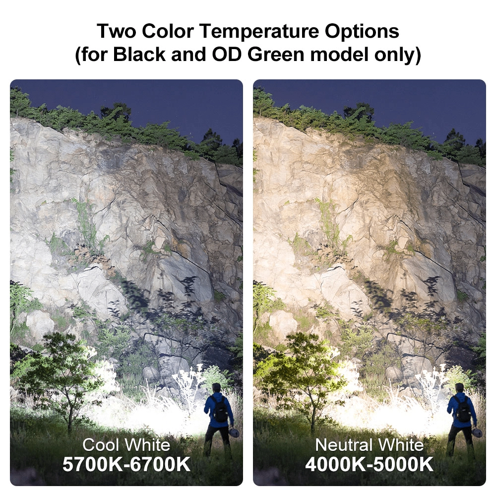 One flashlight for everything: a strong neutral white beam for daily lighting and UV 365 nm (760 mW) for detecting contaminants, document verification, or searching for traces.