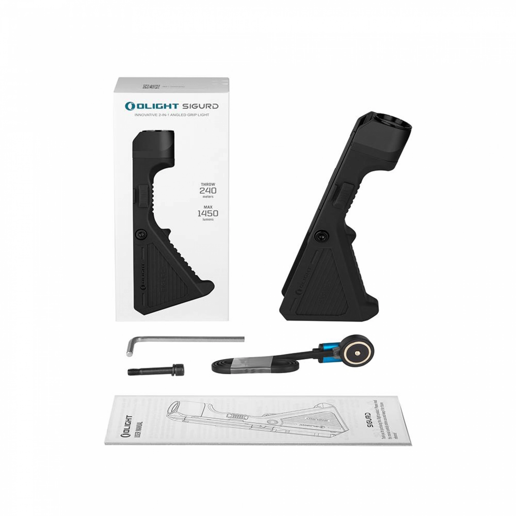Looking for a reliable weapon light for tactical shooting and training? OLIGHT SIGURD combines a powerful LED flashlight with an angled foregrip for maximum weapon control. With a top output of 1450 lumens and a 240-meter throw, you gain confidence in any situation, whether at short or longer distances. The aluminum alloy body with anti-slip texture also effectively insulates heat, keeping the grip comfortable even during extended use.