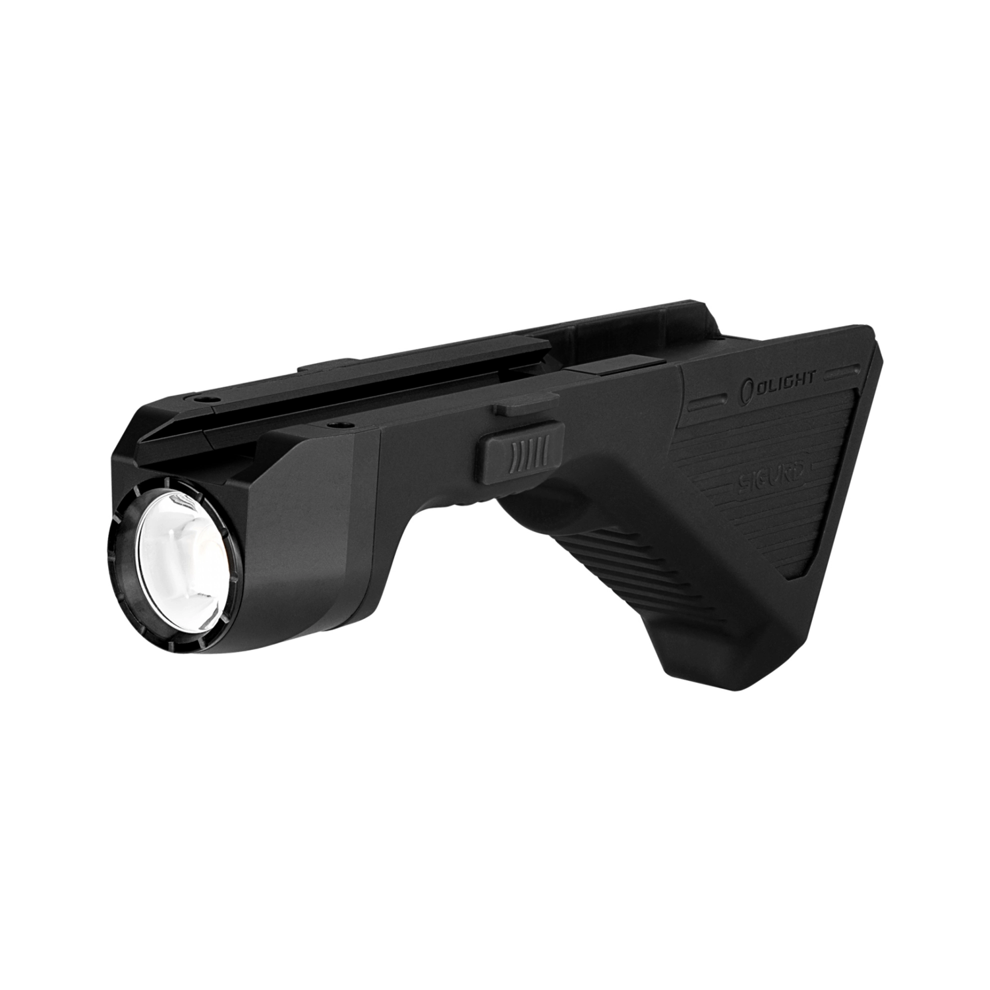 SIGURD combines a tactical flashlight with an angled foregrip. Anti-slip grooves improve grip confidence and help manage recoil better during rapid target transitions.