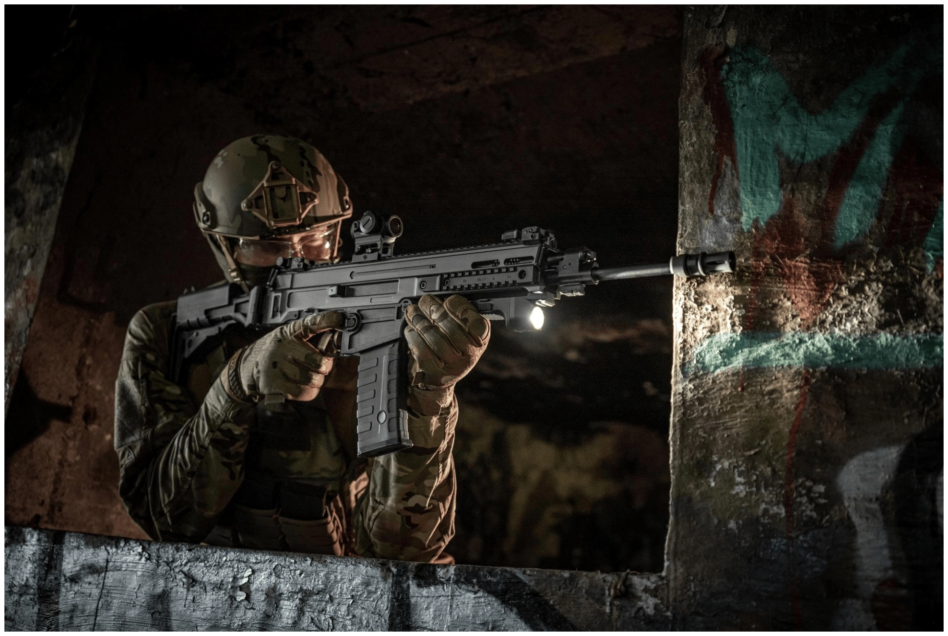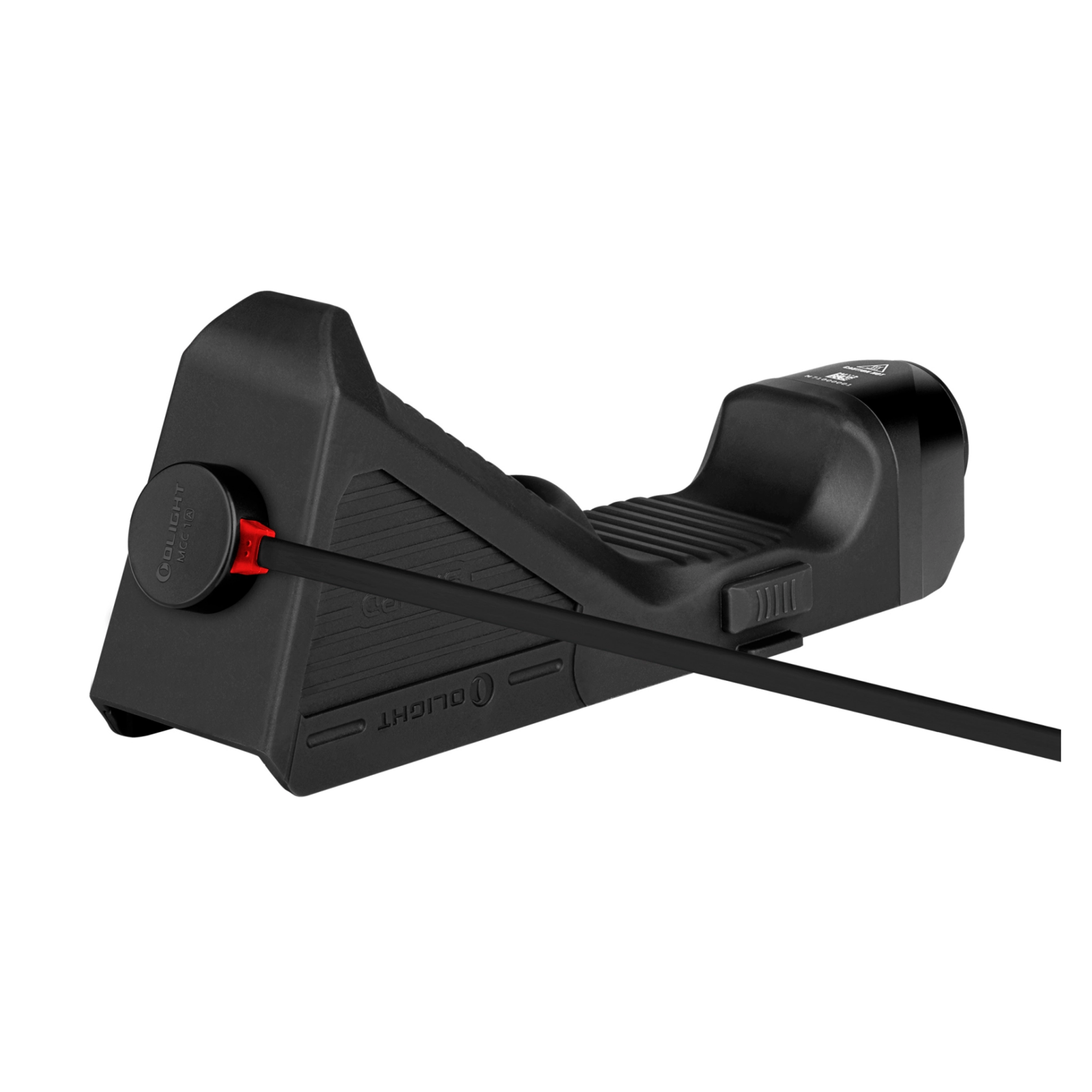 Control is intuitive – side switches on both sides allow on/off by press, with press force adjusting brightness. Mounting is easy via a standard Picatinny rail, and with an added adapter, also on M-LOK. The integrated 2400 mAh rechargeable battery charges via the MCC1 magnetic cable and offers up to 4 hours of runtime in the lower mode.