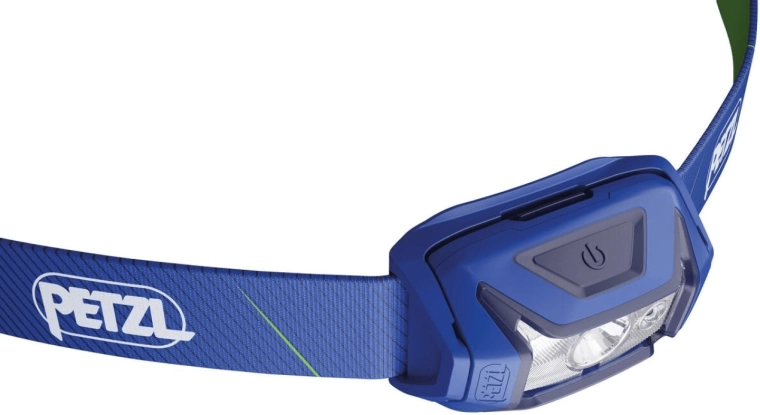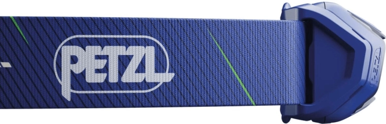 An adjustable, washable, and symmetrical strap holds securely on the head; the base allows tilting the lamp. IPX4 rating withstands rain and drizzle.