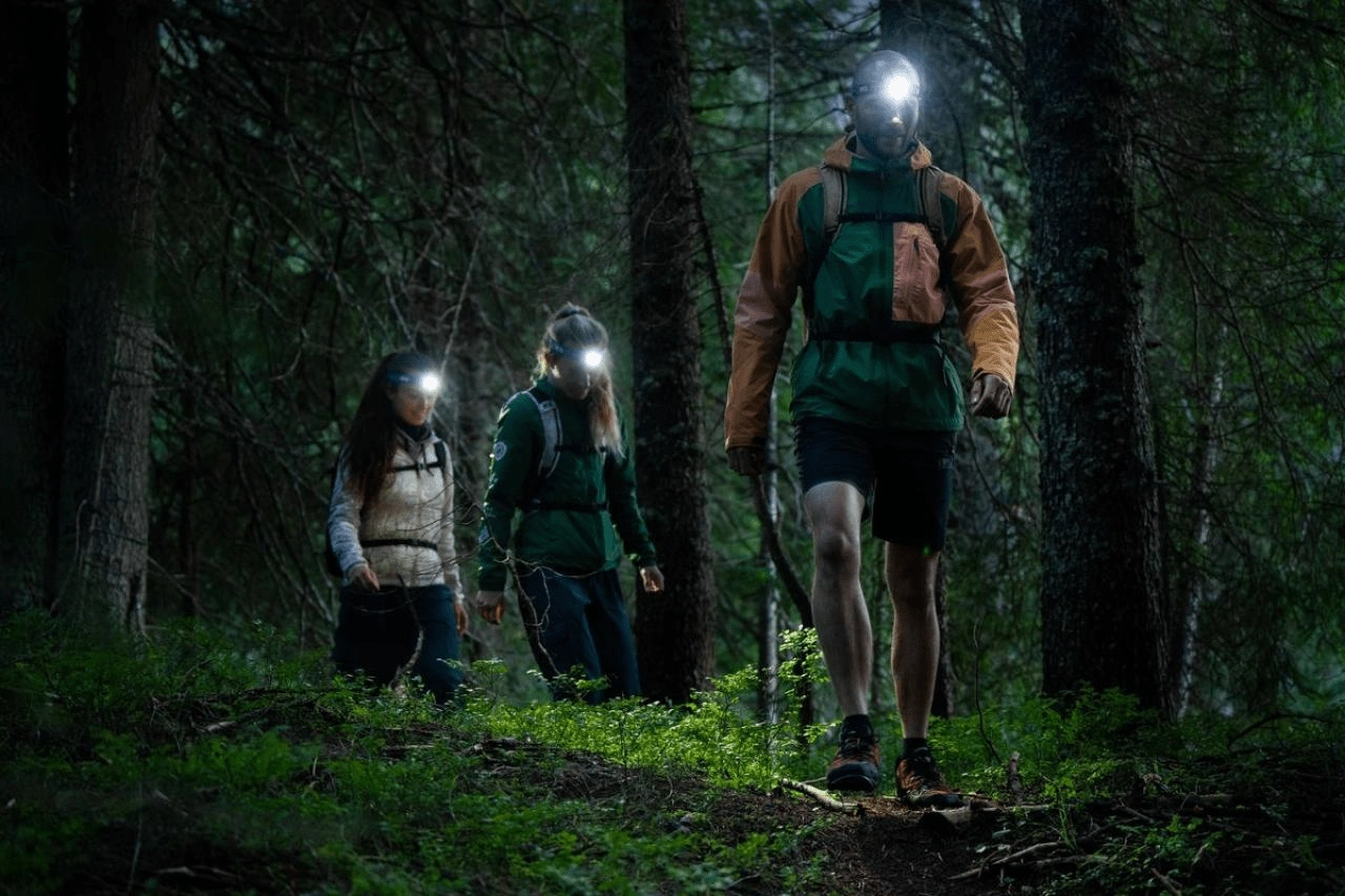For even broader use, the headlamp is compatible with mounts HELMET ADAPT and BIKE ADAPT 2 for attaching to various helmet types or a bike (does not replace mandatory lights required by regulations). The symmetrical, washable headband provides comfort and a secure fit during movement. The storage pouch with eco‑friendly design can be used to turn the headlamp into a lantern.