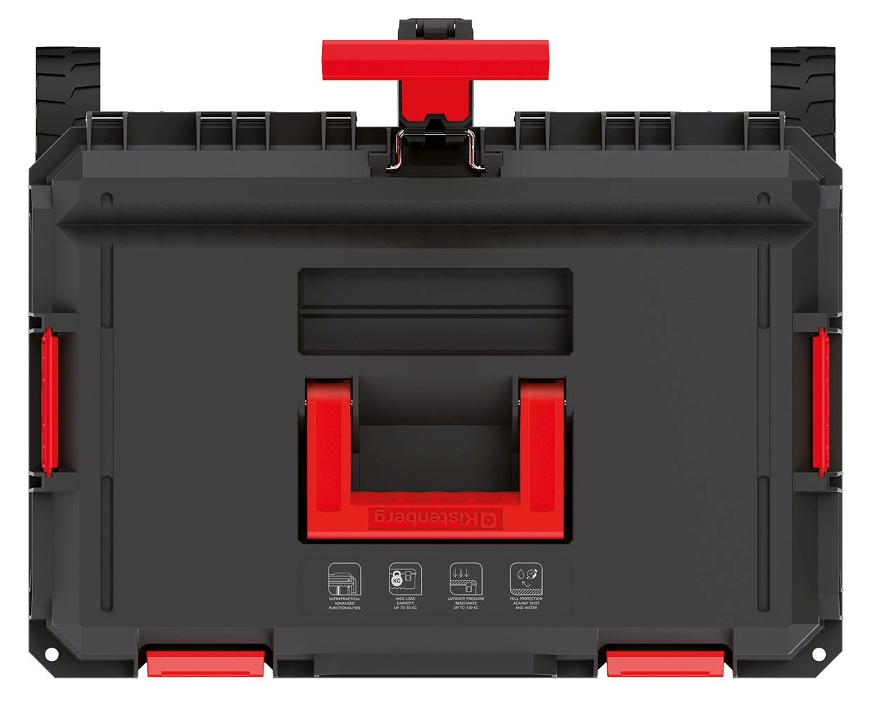 The X-BLOCK range is designed for professionals in demanding conditions. This rolling case combines durable materials, a ribbed structure, and a sealed lid for protection against dust and water. Thanks to the modular system, you can easily connect it with other boxes to create an organized mobile workstation.
