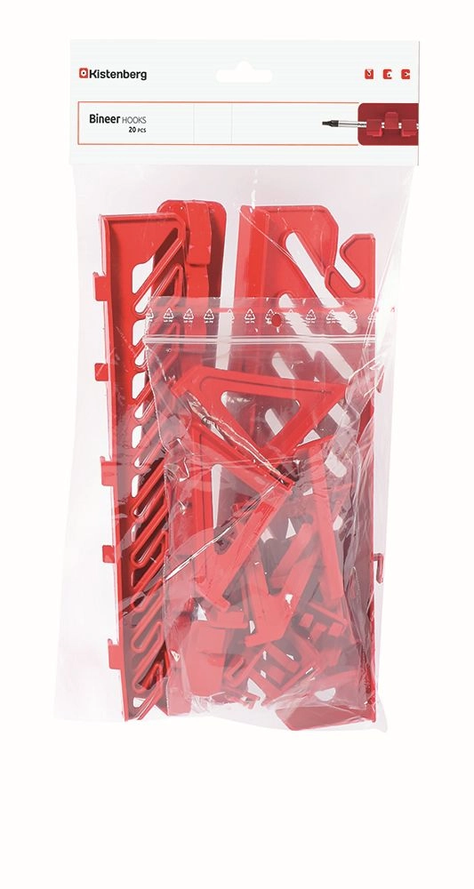 The practical Kistenberg BINEER HOOKS set helps you quickly and neatly organize tools in the workshop, garage, or home. The pack includes 20 differently shaped holders that are fully compatible with wall panels from the BINEER and ORDERLINE ranges. Durable plastic with protection against UV radiation and weather conditions ensures a long service life, while the low weight and easy installation make work easier. The bold red color increases clarity and visibility of tools on the panel.