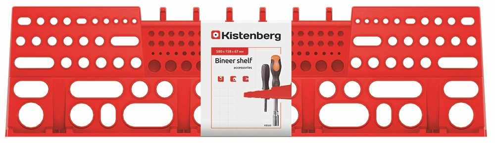 A practical tool holder for BINEER panels measuring 580 × 158 mm in red helps keep your workshop, garage, or utility room perfectly organized. It is made of durable plastic for long service life and offers quick and easy installation along with compatibility for various types of hand tools.