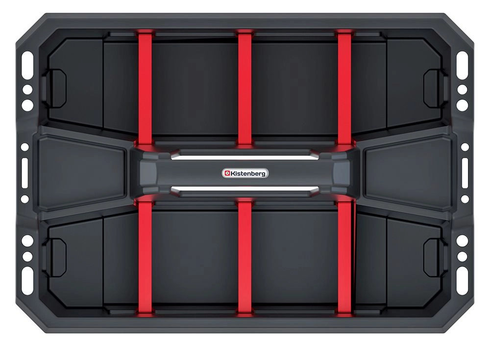 The durable plastic construction combined with an ergonomic two-component handle ensures comfortable and safe transport. The low weight of just 993 g and a 25 l capacity provide an excellent balance of space and mobility. The modern black-and-red design also adds a professional look.