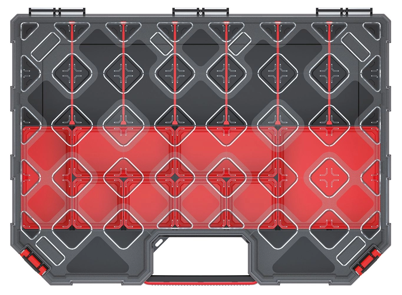 The practical and durable TAGER CARBO PLUS organizer makes it easy to neatly store small parts, accessories, and tools. It offers a spacious interior layout with dividers and a transparent polycarbonate lid for quick content checks. Ideal for the workshop, garage, and mobile tradespeople.