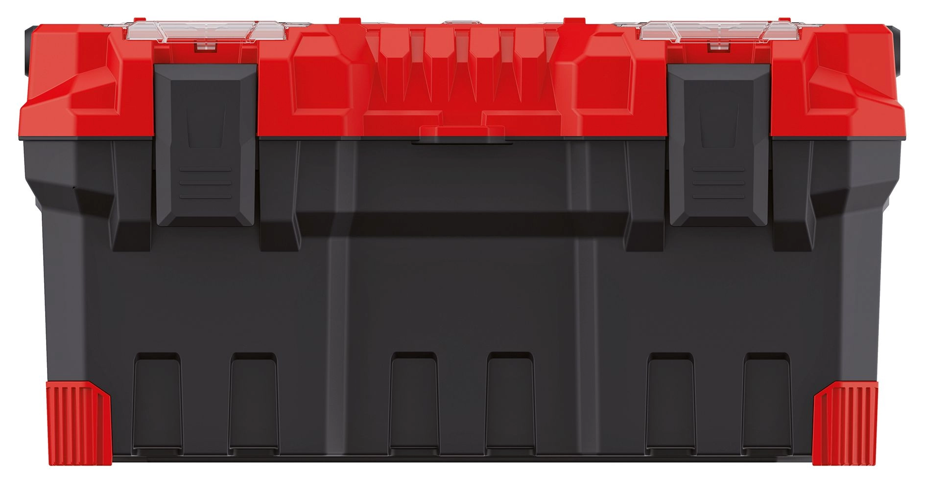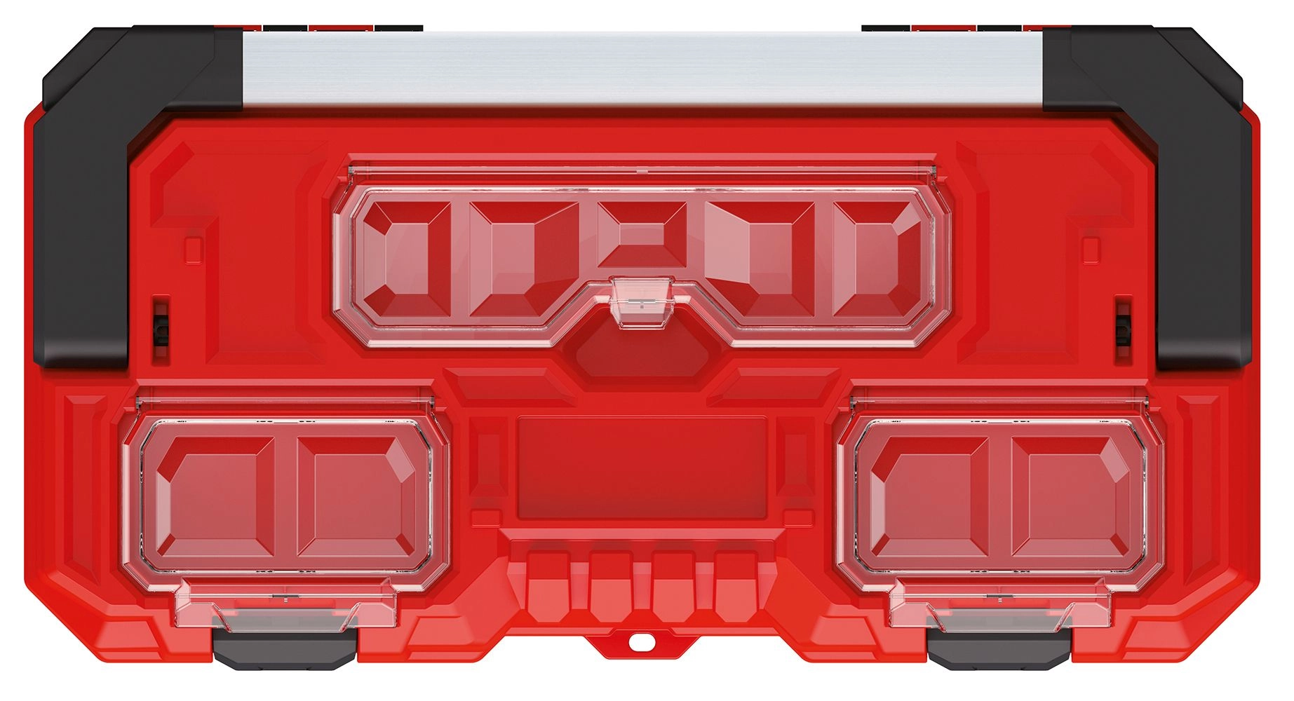 • Space and clarity: main chamber for tools + top transparent compartments for small items.