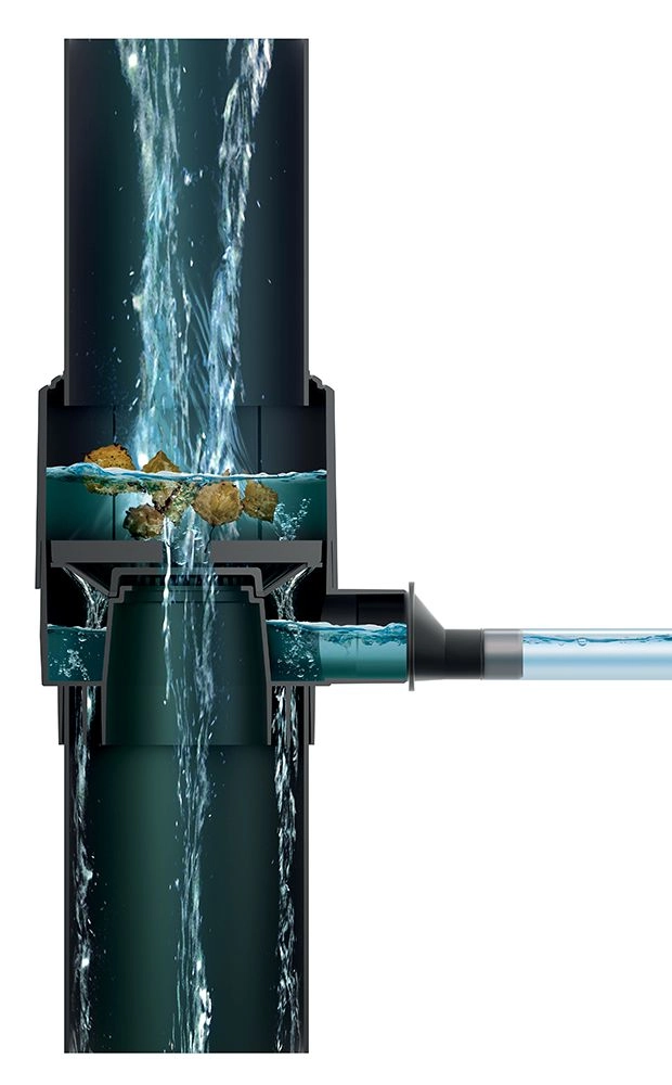 • Efficient separation of coarse particles directly in the downpipe—less clogging and cleaner water.