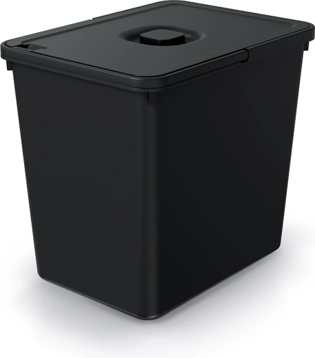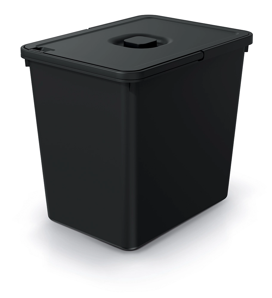 A practical 23 L trash bin in recycled black, ideal for kitchens, offices, and bathrooms. It offers compact dimensions, durable plastic, and a FLAP swing lid for convenient waste disposal. Thanks to its modular design, it can be easily combined with other Systema series containers for efficient sorting. Partly made from recycled materials for a more eco-friendly choice.