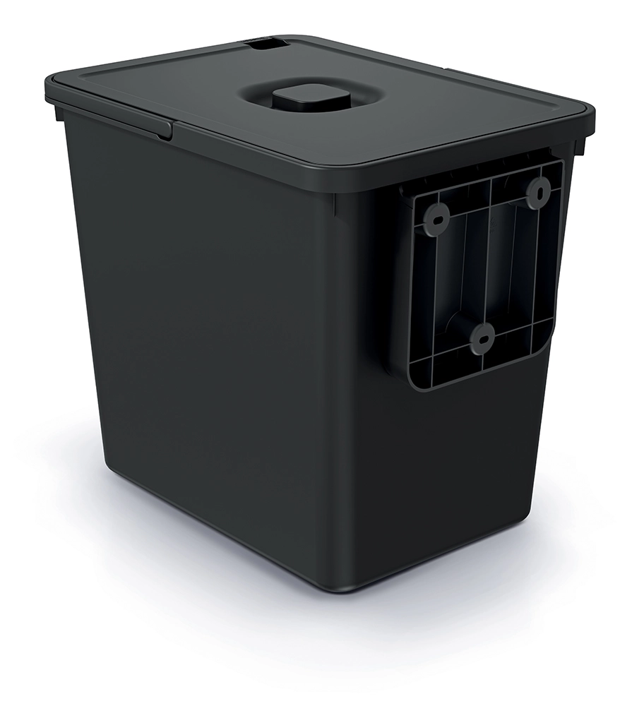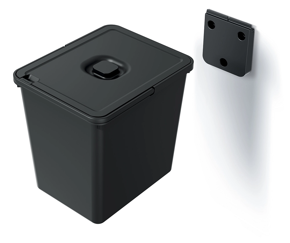 The modular construction with regular shapes makes it easy to combine with other containers from the Systema range—an ideal solution for clear sorting. With the option to mount it on the wall or the front surfaces of furniture, you can easily adapt the bin to your space. The recycled black color and use of recycled materials underline its eco-friendly character.