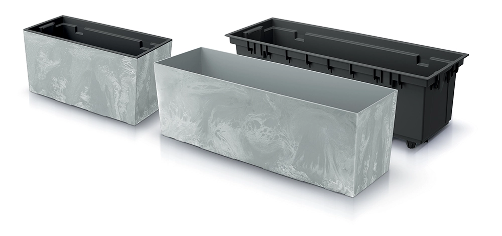 Thanks to the included black insert, planting and plant care are significantly easier—the soil stays in place and handling the planter is convenient. The material is resistant to UV radiation and frost down to -32 °C, so it maintains its appearance and color for a long time.