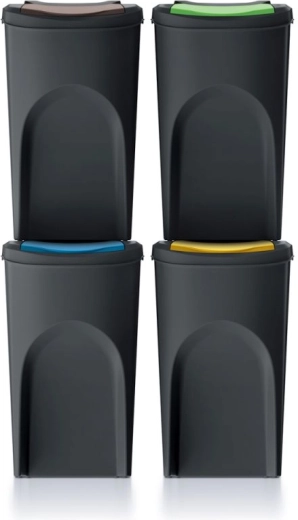 Set of 4 bins for sorted waste Sortibox 4×35 l – recycled black