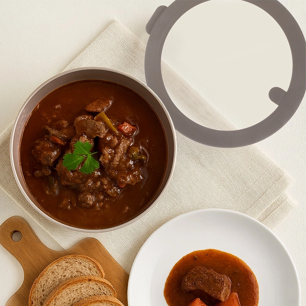 This robust bowl in a modern beige shade makes everyday cooking and preparing larger portions easier. Thanks to the transparent window in the lid, you can see the contents without opening, while the steam vent ensures safe heating in the microwave. The sealing ring helps maintain freshness and minimizes odor escape.