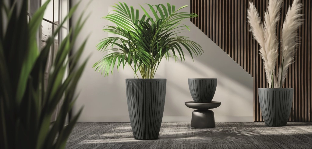 Vertical grooves and a matte concrete gray color frame your plants in style and enhance a minimalist look.