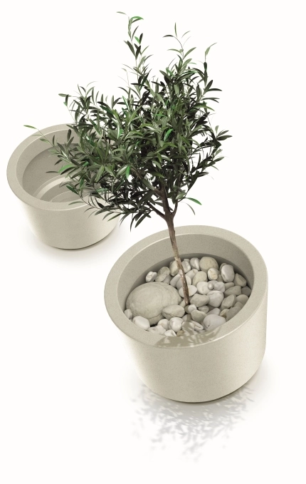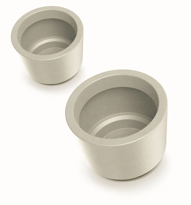 The simple cylindrical shape with a gently matte surface in sand color suits any style. The integrated base adds stability and supports the drainage of excess water.