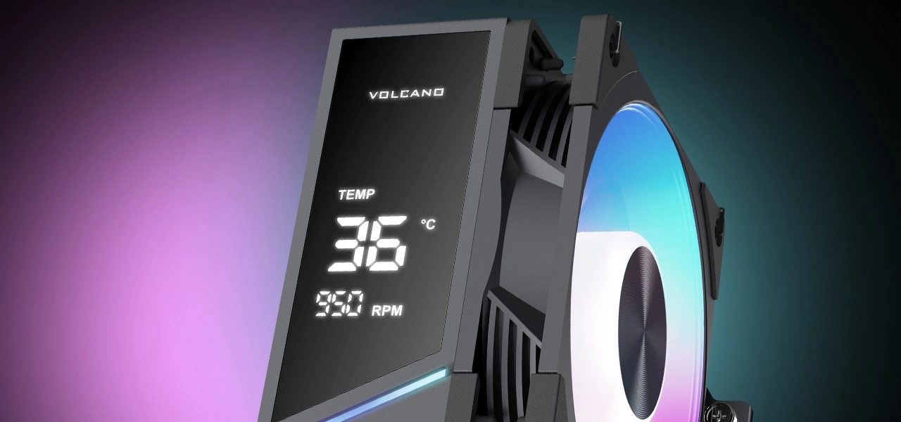 The Modecom Volcano 0C T102 combines elegant design with practical control of CPU operation without software. The built-in LED/LCD display instantly shows key data — CPU temperature and fan speed — for maximum clarity and safety.