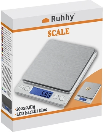 Looking for a reliable precision scale for baking, coffee preparation, or weighing jewelry? RUHHY combines professional 0.01 g accuracy with simple operation and an easy-to-read backlit LCD display. The compact stainless steel and ABS body is easy to clean and fits any kitchen or workshop.